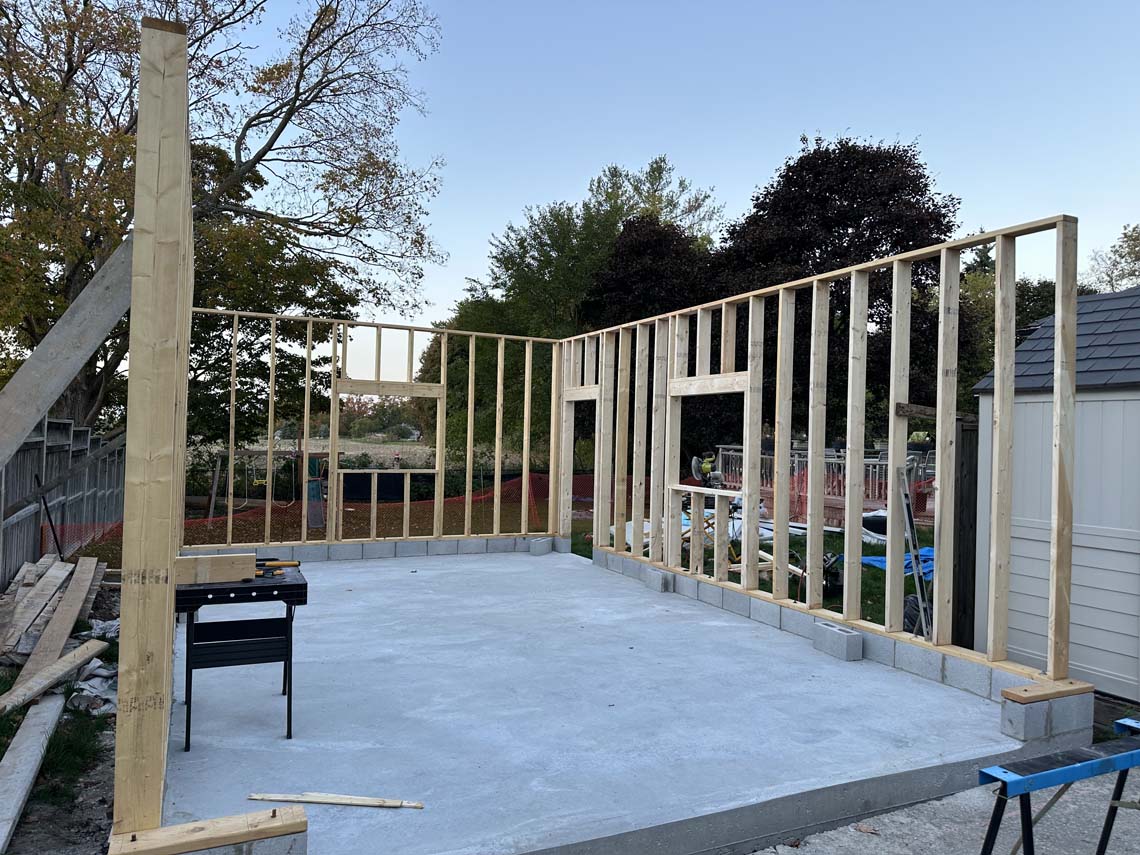 I framed the structure myself. Stud by stud, wall by wall. What surprised me most was how quickly it started to feel real. The moment the first walls stood, the workshop stopped being an idea and became a place.