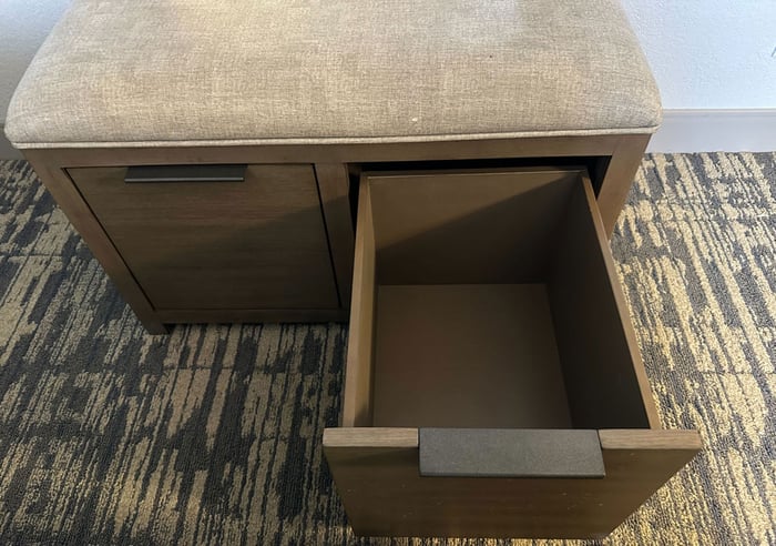 The piece was simple. A box with a cushion on top. Two drawers. Neutral fabric. Neutral wood tone. Neutral hardware.
